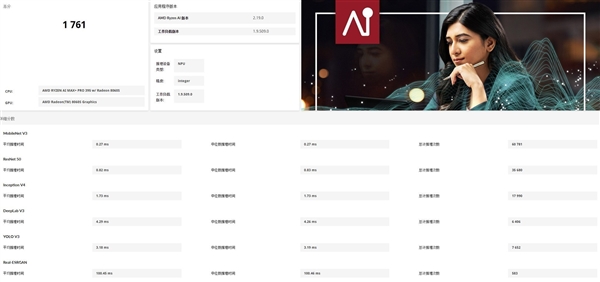 在超凡的生产力效率之外,锐龙AI Max+ PRO 395最为惊艳的还是极其优异的AI算力支持。