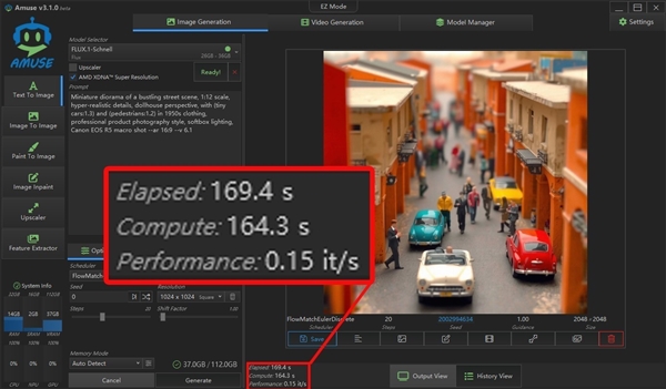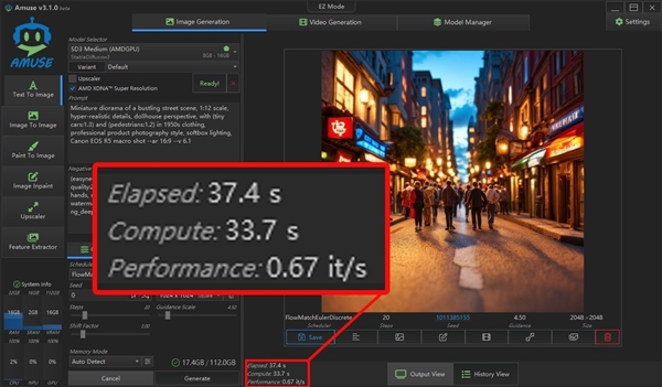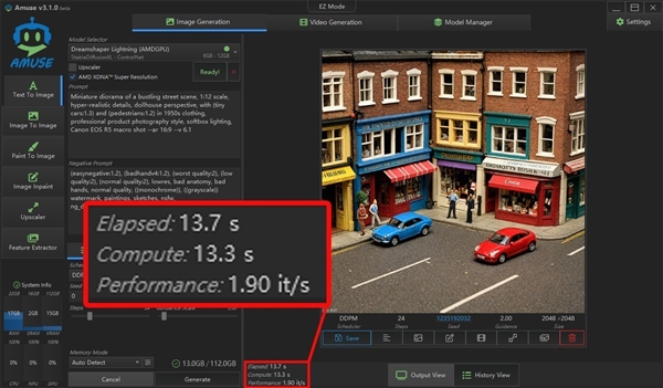 同时,AMD与Amuse AI合作,还为锐龙AIPC打造了专门的AIGC工具Amuse,通过它你可以快速部署适配AMD锐龙平台的AIGC大模型,除了可以做文生图、图生图,还可以做文生视频,而且支持调用AMD NPU进行超分辨率辅助或独立采用NPU来完成图像生成,是目前非常好用且易用的AIGC应用。