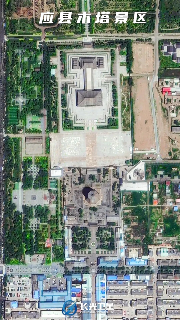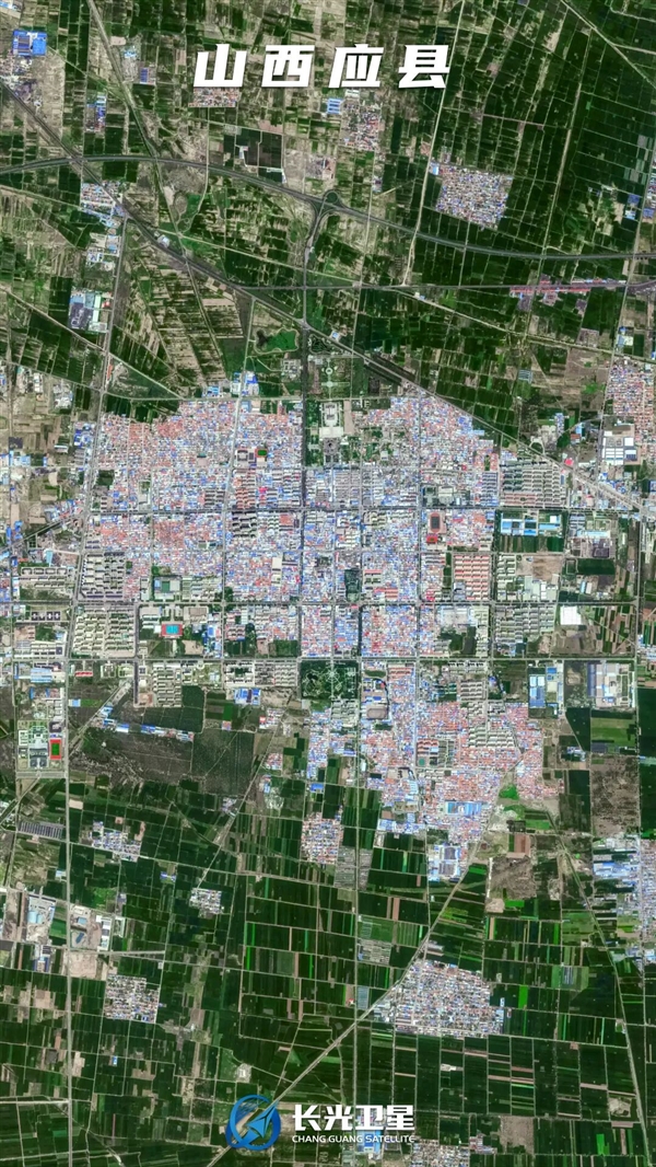 卫星俯瞰山西应县:千年木塔与现代小城的交响曲