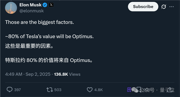 这也就解释了为什么马斯克会将公司80%的未来价值归于机器人: